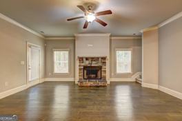 Beautiful Corner-Lot Ranch with Designer Upgrades and Smart Home Features: This stunning 5-bedroom, 4-bathroom ranch home offers a perfect blend of comfort, elegance, and functionality. Situated on a desirable corner property, it welcomes you with an open-concept layout ideal for both everyday living and entertaining. The spacious family room features a cozy wood-burning fireplace and flows seamlessly into the formal dining room accented by a coffered ceiling. The gourmet kitchen is a chef's dream-complete with modern lighting, an oversized island, abundant cabinetry, stainless steel appliances including a cooktop with range hood, double ovens, and a refrigerator. The main level hosts the primary suite with a luxurious private bath, along with two secondary bedrooms and two additional full bathrooms. Upstairs, a versatile bonus level provides a flex space, a bedroom, and a full bathroom-perfect for guests or a home office. Enjoy year-round comfort in the inviting sunroom with its own fireplace, or take advantage of the convenience of a laundry room equipped with washer and dryer. The home also includes a side-entry 2-car garage, smart home technology, and an alarm system for peace of mind. Located in the sought-after Union Grove school district, this home is just minutes from McDonough Square, shopping, dining, and entertainment. Tenant is responsible for all utilities.