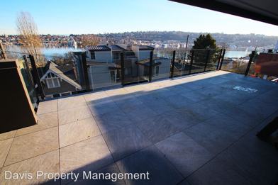 Treat yourself to luxury living with sweeping views of all Seattle has to offer. Views start from the moment you walk in the front door to the moment you close your eyes to sleep at night. Renovated living space with unbelievable 180 degree views of Lake Union, Gas Works, Cascade Mountains, and city of Seattle. This home has like new, updated, living space with bathrooms and kitchen that have all the amenities needed. Home has 1 great room with kitchen, living room, dining room, and huge view deck. Kitchen has been updated and has granite countertops, newer wood cabinets, Subzero fridge, Gas range, and custom lighting. Living space has beautiful wood floors, great built in cabinets and shelving as well as custom accents and lighting fixtures. Gas Fireplace and Amazing Views create great focal points. Huge view deck provides the ultimate dining and entertaining space. Both bedrooms are quite large with great views and master has walk in closet and 5 piece bathroom. Second bedroom has ample built in storage including drop down bed (queen). 2 garage parking spots comes with the rental as does storage unit. Home is SE corner unit providing the best views and privacy.