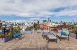 Parking is available for an additional $350 per month, and pets are welcome with certain restrictions. Cats and dogs up to 45 lbs are allowed, with a non-refundable pet charge or increased deposit and a monthly charge required. The pet rest area on the roof is exclusively for approved pets, and a fine will be charged for any owner not cleaning up after their dog.