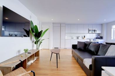 Step into this bright and modern 1-bedroom, 1-bathroom apartment, thoughtfully designed to be your comfortable and stylish home away from home. The kitchen is fully equipped with modern appliances and all the essentials you need to prepare meals. A washer and dryer are included for a hassle-free stay.