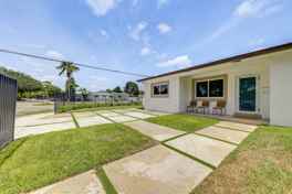 Immerse yourself in the vibrant culture of North Miami with this stunning 4-bedroom, 2-bathroom vacation rental. This splendid home boasts an airy living space, a fully equipped kitchen, and yard space for afternoon relaxation. Located just minutes away from top attractions like the iconic street murals of Wynwood Walls and the warm sands of Bal Harbour Beach, you'll feel at home in this inviting property. At day's end, gather for dinner, watch a movie, and retreat to your comfortable bedrooms to catch up on rest. This single-story home requires 2 steps to enter.