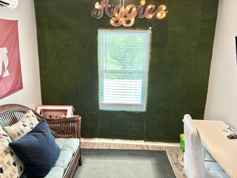Inside, you’ll find a large, open living and dining area perfect for relaxing or entertaining. The kitchen features a gas stove, coffee bar, and all cookware, utensils, dishes, and glassware you could need. Upstairs, a private room with a TV and games provides space for streaming or kid-friendly fun. The backyard is the heart of this home, featuring a covered pavilion, seating, an outdoor swing, fans, lighting, and a gas BBQ, perfect for celebrations, game-day cookouts, or quiet evenings outside.