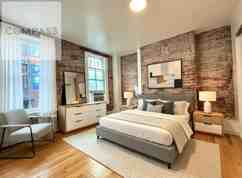 This sun-filled home combines classic downtown charm with modern comfort. The spacious living room features exposed brick walls and high ceilings, creating a warm and open atmosphere perfect for relaxing or entertaining.
