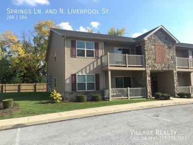 Springs & N. Liverpool St. #G is a 2 bedroom, 1 bathroom apartment for rent. It is located in Manchester. It has apartment amenities including in-unit laundry, carpet, garden, air conditioning, assigned parking, outdoor space, central heat, balcony, dishwasher, walk-in closets, and microwave.