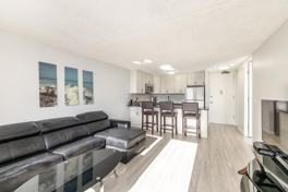 This apartment features central AC, a flat-screen TV with Roku, and free Wi-Fi. The kitchen is equipped with a stove/oven, coffee maker, dishwasher, and full-size refrigerator. The bathroom includes a shower/toilet, sink/vanity, and an in-unit washer/dryer. Bed linens, bath towels, beach towels, dishes, silverware, cookware (rice cooker, blender, and tea kettle), a hair dryer, an iron, and an ironing board are provided. A starter kit with a paper towel, toilet paper, shampoo, conditioner, bath soap, hand soap, and liquid dish soap is also included.