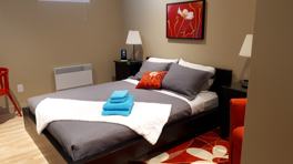 Une chambre à coucher spacieuse et fermée avec un lit Queen (draps, literie fournis),
