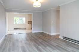 Adjacent living room: Large living room space with access to huge private balcony, covered in custom engineered wood flooring, designer lighting and paint throughout, perfect for couch and TV setup, even a space to setup a desk.