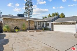 In the heart of Encino, this modern retreat showcases a seamless blend of classic mid-century warmth and fresh contemporary style, perfectly crafted for effortless California living. Step through the entry and into a light-filled living room, where vaulted beamed ceilings and a striking stone fireplace create a sense of warmth and quiet sophistication. Natural light floods the space, accentuating clean architectural lines and an open, airy flow. The layout transitions seamlessly into a spacious family room wrapped in glass, with sliding doors that open directly to the backyard blurring the line between indoor comfort and outdoor living. The kitchen stands as a vibrant focal point, featuring colorful quartz countertops, custom cabinetry, and state-of-the-art stainless steel appliances designed to elevate both everyday living and entertaining. The private primary suite offers a calm and inviting escape, complete with a generous walk-in closet and a beautifully remodeled bath with a frameless glass shower and modern finishes. Two additional bedrooms offer flexibility for guests, a home office, or a creative studio. Step outside to a resort-style backyard designed for true California living with a heated pool, spa, multiple patios for lounging or dining, and mature privacy landscaping. Whether hosting vibrant gatherings or enjoying a quiet morning by the water, the setting delivers an unmatched sense of ease and lifestyle. Additional highlights include a fully equipped gym, in-unit laundry, central air conditioning, built-ins throughout, and ample parking with both a garage and driveway. Set in one of Encino's most desirable neighborhoods, moments from Ventura Boulevard's premier dining, shopping, and amenities, this home embodies refined design, effortless functionality and elevated California living.