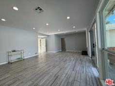 This beautifully renovated three-bedroom, two-bathroom home is available for rent in the desirable neighborhood of Panorama City. This residence features a bright and spacious open-concept living area with recessed lighting, large sliding glass doors that provide ample natural light, and elegant wood-look tile flooring throughout. T