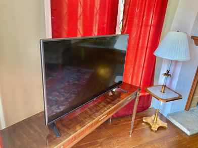 This apartment features hardwood floors and tall windows that let in plenty of sunshine. The kitchen is equipped with all appliances and cookware. There is a dining room that seats 4 people and connects to an eat-in kitchen area. Enjoy morning coffee on the porch. A big Smart TV is available for watching your favorite shows. AC units are set-up during the summer.