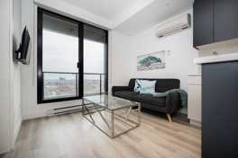 This new condo is very well located near the Bell Centre, just steps away residents have access to the Golden Square Mile’s attractions. It features 1 bedroom with a queen bed and 1 bathroom.