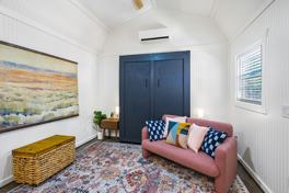 The property is designed to offer tranquility and quiet, with each unit having its own private space and fenced yard. Guests are asked to respect the peacefulness of the area. Parking is available directly in front of the fence, and the property includes a community garden shared with other vacation rentals.