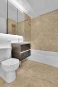This stunning convertible one bedroom unit boasts massive windows against towering ceilings that fills the space with natural light. Warming the spacious living area with a welcoming ambiance. The gourmet kitchen is not only stylish with invigorating bright modern finishes, but also equipped with stainless steel appliances and an eating bar. Decadent sleek stone countertops; the perfect place to host your magnificent dinner parties and impress your guests. With a generous queen sized flex bedroom your home will be the envy of the town, as it will be your escape away from the city that never sleeps. Complete with pristine marble bath and custom sinks with vanity. Net rent listed. Model photos for finishes.
