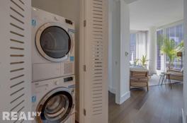 Each home, from studios to two-bedroom layouts, has been thoughtfully designed with floor-to-ceiling windows, custom built-out closets, and Scavolini kitchens featuring Quartz countertops, full-height backsplashes, and a suite of integrated Bosch appliances. Residences also include in-unit washer/dryers, while spa-inspired bathrooms offer Italian vanities, oversized medicine cabinets, floor-to-ceiling tilework, and both soaking tubs and glass-enclosed showersblending style and function seamlessly.