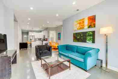 This apartment features a Smart TV, in-unit laundry, and a well-stocked kitchen with a stove/oven, microwave, dishwasher, refrigerator with ice maker, dishware/flatware, spices, a drip coffee maker, and a kitchen island with breakfast bar (seating for 2). Linens, towels, complimentary toiletries, and central air conditioning/heating are provided. Guests have access to a shared patio, and a backyard is available upon request.