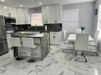 Lovely Fully Renovated 3 bedroom, 2 bathroom single-family home in Miami! This upgraded property is located on a large lot and offers a spacious layout in a very convenient location. Upon entering this home you will find a spacious living room area leading to the kitchen with plenty of windows allowing for natural light and beautiful neutral paint throughout. In the kitchen, you will find lots of modern fancy cabinets for storage space. The exterior of this home features a large lot that is fenced-in complete with a spacious patio area and enough room for a BBQs and family time making this home perfect for outdoor entertaining. This home is conveniently located just minutes from major roadways, shopping, dining, and more! Come and see you will fall in love.