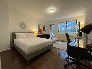140 W 19th St #1038551P, New York, NY is a studio, 1 bathroom apartment for rent. It is located in the Chelsea neighborhood of New York. It has apartment amenities including tv, in-unit laundry, central heat, furnished, oven, balcony, wi-fi, dishwasher, air conditioning, and microwave. Cats and dogs are allowed, making it a pet-friendly apartment.