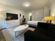 Newly furnished by professional designers, this space includes a large-screen LED Smart TV and a fully equipped kitchen with stainless steel appliances, beautiful oak floors, and a nice balcony.