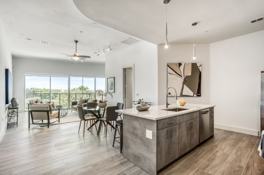 Best new high rise in Downtown Dallas. Once you see it, you'll get it. Boasting an array of sleek finishes and a thoughtful open plan layout, this immaculate 1-bedroom, 1-bathroom is a paradigm of modern Dallas living. Features of this 1000 sq. ft. home include wide plank engineered hardwood floors, huge Pella windows with exposure, central heating and cooling, and a convenient washer/dryer already in your home. Beyond a functional entryway space, the home flows into a luminous, open-concept living, dining, and kitchen area. The galley-style kitchen is equipped with white quartz countertops, a white tile backsplash, Nolte cabinets, and a suite of high-end stainless steel appliances from Samsung and Kohler. The bedroom sits just off the living area and has a large reach-in closet. The bathroom has ceramic tile flooring, textured walls, and chic Kohler and Delta fixtures.
