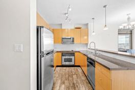 - Full kitchen (refrigerator, freezer, oven, stove, dishwasher, sink, lots of cupboards and storage space)