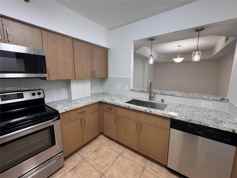 Welcome home to this Freshly Painted, FIRST FLOOR CORNER condo offering 3 bedrooms and 2 bathrooms at Keystone Courts. Enjoy a gorgeous MODERN BRAND-NEW KITCHEN with stainless steel appliances, NEW lighting throughout, NEW Microwave and Dishwasher, NEW bath fixtures, 2 parking spaces and a NEW A/C. The home features tile flooring throughout, a large walk-in closet with built-in cabinet & a large open balcony with ground level access and a convenient in-unit washer and dryer. Excellent Fontainebleau Blvd location with quick access to major expressways, shopping, and dining. Community offers a clubhouse, olympic swimming pool & tennis courts. Easy to show - Please use show assist.