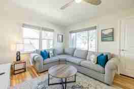 This charming and fully equipped home offers a cozy living room with a plush sectional sofa and a Smart TV. The fully stocked kitchen is perfect for preparing meals, equipped with stainless steel appliances and a coffee maker. A washer, dryer, drying rack and ironing board are available for guest use. Enjoy the private backyard, perfect for relaxing with a morning coffee or evening drinks. For those traveling with little ones, there are swings and plenty of space to run around.