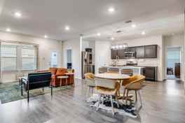 Beautifully Appointed Single-Story Home for Lease! Charming curb appeal and stylish updates define this open-concept home. Thoughtfully designed with decorator lighting, modern hardware, and a custom wood accent wall in the kitchen and dining area, this residence blends warmth and sophistication. The layout features three spacious bedrooms, including a private primary suite with a walk-in shower and two closets.