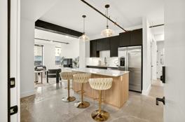 The loft features 12-foot ceilings, large windows, and exposed steel accents, creating an airy, industrial-modern vibe. The open and bright living area features a Smart TV and fast Wi-Fi. The kitchen is fully equipped for cooking. You'll also have a combo washer/dryer and central A/C and heat.