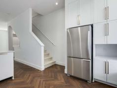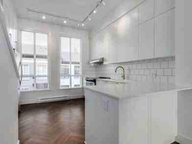 KITCHNER's Grandview home, 2 bedrooms Georgian brick row home. Steps away from Oliver Park, South Ridge & Morgan Crossing Shops. Design Briefing: This especially wide floor plan accommodates a double side-by-side garage for convenience of parking. The L shaped kitchen w/island opens into your backyard w/ both patio and enclosed grassy area- great for kids & pets. Kitchen features a modernist's retake on shaker-style cabinetry w/dramatic bronze pulls & faucet hardware. Ten-foot-high ceilings & over height windows fill the main level of living w/natural light while maximizing volume, storage, and interior design possibilities. Striking herringbone floor pattern brings back a historic pattern that's in vogue.