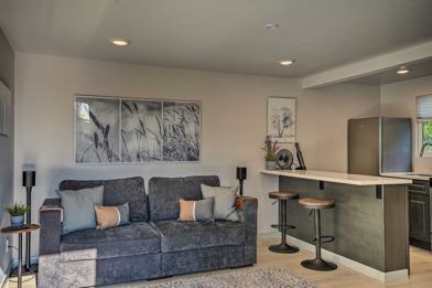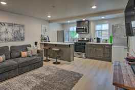 This brand new apartment features new furnishings and appliances, 2 Smart TVs, and a dedicated workspace. The kitchen is equipped with cooking basics, a microwave, refrigerator, stove/oven, dishware and flatware, a Keurig coffee maker, and spices. Other amenities include free Wi-Fi, towels and linens, a hair dryer, hangers, an iron and board, trash bags and paper towels, and complimentary toiletries. For exercise, hand weights, a yoga mat, and a foam roller are provided. Enjoy the updated landscaping and private outdoor space.