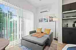 Feel at home in this stylish suite located in the Bishop Arts District. This suite features a queen-size bed, a sofa sleeper, a Smart TV, and a full kitchen.