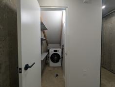 Discover modern comfort and contemporary design in this brand-new, detached two-level, 1 bedroom garden suite where style meets practicality. Featuring thermal heating throughout, heated concrete floors on the main level, and heated bathroom floors for year-round comfort, this home blends luxury with efficiency. The skylight fills the space with natural light, complementing the sleek galley kitchen with built-in premium appliances and striking black accents. A spa-inspired bathroom with a glass walk-in shower enhances the modern aesthetic, while all blinds are included for a move-in-ready experience. Enjoy the convenience of a separate laundry on the ground floor and a seamless walkout to the rear yard. Heated walkways ensure easy winters, and thoughtful extras like a dedicated bicycle spot to add to everyday ease. Located close to transit, shops, cafes, and restaurants, this suite offers flexible lease terms and includes one year of free heat, making it perfect for professionals or creatives seeking comfort and convenience in a prime location.