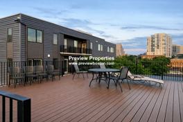 Shared roof deck with city and park views