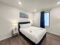 Welcome to this stylish 2-bedroom apartment—where modern comfort meets the timeless charm of Philadelphia. Whether you're here for work, a family vacation, or a weekend getaway, this thoughtfully designed space has everything you need for a relaxing and memorable stay. Unwind in the serene primary bedroom, featuring a queen-sized bed with plush linens and ample storage. It’s the perfect retreat for restful nights and refreshing mornings after a day of adventure or business. Perfect for families or groups, the second bedroom offers two queen-sized beds, each dressed in soft linens for a cozy night’s sleep. There’s plenty of space for everyone to relax and recharge. Need to catch up on work? Take advantage of the dedicated workspace, ideal for remote work or studying, so you can balance productivity with relaxation during your stay. The cozy living room offers a welcoming space to relax, complete with a comfortable sofa, tasteful decor, and a TV for your entertainment. Thoughtfully lit and well-designed, it’s perfect for unwinding or hosting additional guests. Cook up your favorite meals in the fully equipped kitchen, complete with modern appliances, cookware, and plenty of counter space. The dining area provides the perfect setting for anything from morning coffee to a home-cooked dinner. Enjoy the comfort of two well-appointed bathrooms, each featuring walk-in showers, fresh towels, and complimentary toiletries—everything you need to refresh and unwind.