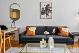 The apartment features a dedicated workspace with a desk and office chair, a large kitchen with a dishwasher, and a dining table for two. The bedroom includes a queen-size bed with a superior-quality mattress, a dresser, and two closets for ample storage. Enjoy a 50" smart TV, luxury linens, plush towels, and original hardwood floors. Equipped with both A/C and heating, the apartment ensures year-round comfort. Enjoy free high-speed wireless internet, perfect for working remotely or staying connected throughout your stay. The fully stocked kitchen makes meal preparation effortless, and a hairdryer and iron/ironing board are also provided for your convenience.