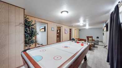 This home features a stylish living room, a dedicated game room with a hockey table, and a fully equipped kitchen. For added convenience, enjoy a smart TV, Wi-Fi, and in-home laundry.