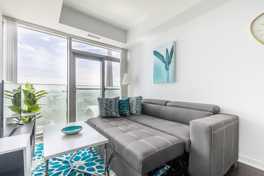 This centrally located apartment is steps from the Scotia Bank Arena and Union Station, and within walking distance of the Skydome, CN Tower, Aquarium, and Financial District, as well as hundreds of restaurants. The Eaton Centre and Queen Street fashion district are also nearby, with easy access to the subway, GO station, grocery store, LCBO, and TD bank.