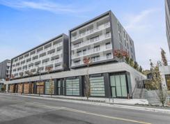 -quartz countertops, stainless steel appliances, large windows and high ceilings.