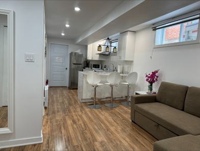 All equipped, new renovated bachelor in a nice and peaceful Triplex, with high quality products, Condo Style, very bright, closed Bedroom, opened style Living Room and Kitchen with Eating Countertop. The sofa bed can be converted to a double bed. Refrigerator, Stove, Washer and Dryer, cookware, dishes, and utensil are included. Wifi and basic TV channel are included. Very nice area. Convenient public transport, easy drive to downtown in 20 mins.
