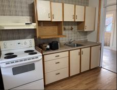 Kitchen and entry on second, living room and bedrooms on the third; entire third floor is carpeted
