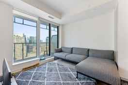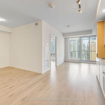 Experience the pinnacle of luxury urban living at The Prestige @ One Yonge, which is perfectly situated in the vibrant heart of downtown Toronto. This stunning 1+den condo boasts 9-foot smooth ceilings and is bathed in natural light. Sleek laminate flooring adds a modern touch, while the gourmet kitchen features high-end built-in appliances. With easy access to Union Station, the lakeshore, and the financial district, along with top-tier restaurants and supermarkets just steps away, convenience and style are at your doorstep. ***Photos edited to remove tenants furniture with AI***