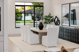 This stunning, newly constructed modern-traditional residence exemplifies unparalleled craftsmanship and sophisticated design at every turn. Thoughtfully curated designer details create an atmosphere of refined luxury throughout. Step inside to soaring 12-foot ceilings, recessed smart lighting, sleek architectural lines, bespoke light fixtures, soothing neutral tones, and rich hardwood floors that flow seamlessly throughout the open-concept living spaces. The dramatic living room centers around a striking 72-inch linear glass fireplace and expansive multi-slide doors that effortlessly blend indoor and outdoor living — perfect for entertaining on any scale. The magazine-worthy gourmet kitchen is a chef's dream, featuring custom cabinetry, a full Monogram appliance suite including built-in column refrigerator, freezer, and wine refrigerator, double wall ovens, a professional 7-burner gas range, breathtaking Taj Mahal quartzite countertops, and a sculptural Roman clay range hood that serves as a true work of art. Retreat to the serene master suite, where sliding glass doors open directly to the backyard and a spa-inspired ensuite awaits: dual floating vanities, an oversized steam shower, a freestanding sculptural tub, and an enormous custom walk-in closet complete with its own stackable washer and dryer for ultimate convenience. A versatile den offers the perfect flex space for a home office, library, or media room. Outside, the resort-like backyard is an entertainer's paradise with an expansive paver patio, built-in barbecue station, and low-maintenance artificial turf, creating a private oasis ready for year-round enjoyment. Timeless elegance meets modern luxury-this is the one you've been waiting for.