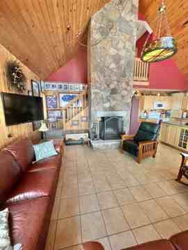 Feel at home in this 3-bedroom home with 2 bathrooms that sleeps 8, featuring a large sandy beach and plenty of sitting areas to enjoy the views of the lake.
