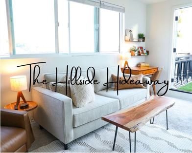 This unique rental offers two separate units, perfect for families or couples vacationing together who want their own private space. Hillside Hideaway II features a galley-style kitchen, a kitchen island with bar stool seating, and a large private 500 sq ft terrace with a fire pit and outdoor furniture. Enjoy outdoor dining for 6, bar stool seating with city views for 4, and a BBQ. For your convenience, beach towels, a cooler, and beach chairs are provided.