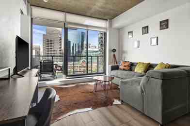 1010 6 Street SW #1345879P, Calgary, AB is a 1 bedroom, 1 bathroom apartment for rent. It is located in the Beltline neighborhood of Calgary. It has apartment amenities including fireplace, dishwasher, furnished, wi-fi, balcony, in-unit laundry, tv, microwave, air conditioning, central heat, and oven.