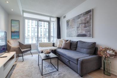 Enjoy easy access to the TTC, Union Station, Lake Shore, and Gardiner Expressway. This apartment is steps away from the CN Tower, Rogers Centre, Union Metro Station, Financial District, bars, restaurants, and Sobeys Grocery Store, as well as Bishop Airport.