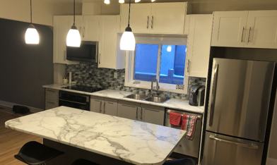 *Kitchen: Full kitchen, including fridge, microwave, dishwasher, vented stove/ range with oven