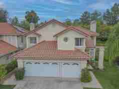 Located in Trabuco Canyon's Rancho Cielo gated community this beautiful 2946 square foot is ready for lease. Nestled at the end of a peaceful cul-de-sac, this warm and inviting home boasts five spacious bedrooms and three remodeled bathrooms. The entry leads to an inviting living room with vaulted ceilings and fireplace. The dining room opens to the living room and is adjacent the modern kitchen which includes stainless steel appliances and an inviting island. A main floor bedroom with full bathroom is also located on the ground level. Upstairs you'll find the spacious primary suite with retreat as well as three additional bedrooms along with the hall bathroom which includes dual sinks. Step outside to a large lot adorned with fruit trees and a vegetable / herb garden ready to be planted for next season. The three-car garage provides ample space for vehicles and storage (wired for electric vehicle charging), while the community amenities, just a short walk away, include a refreshing pool and spa, a sport court, and pickleball and tennis courts for active leisure. Enjoy the benefits of a whole house fan that enhances airflow throughout the home, solar energy (great to help offset electric use), air conditioning, and ceiling fans, ensuring year-round comfort. This exceptional property combines modern upgrades with a serene environment, making it an ideal retreat. Schedule your private tour today and experience the lifestyle this home has to offer!