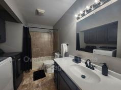One bedroom and one bathroom located upstairs along with the kitchen, living space, washer and dryer, 2 bedrooms and one bathroom located downstairs!