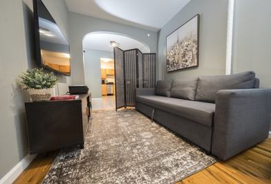 Feel at home in this charming, newly renovated, and fully furnished 2-bedroom apartment located on the third floor of a walk-up building in New York. The apartment offers ample space and all the necessary amenities for a comfortable stay, including a living room, dining room, full kitchen, and bathroom.